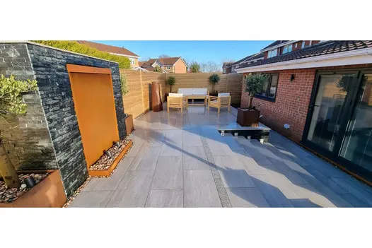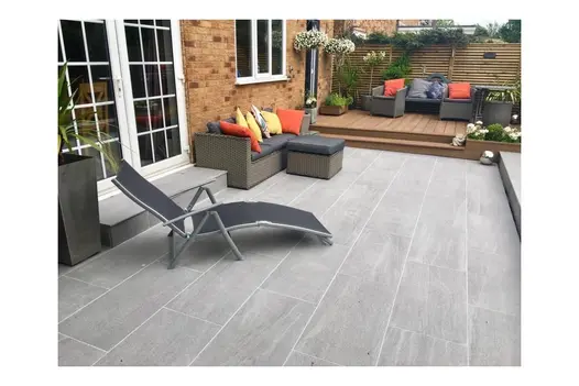 Overland Silver Porcelain Paving delivers a crisp, modern finish with light grey tones enhanced by fine linear shading. The subtle patterning gives the slabs a directional quality that draws the eye across the space, while working harmoniously with rectilinear elements such as steps and edging. Available in 1200×600 and 900×450 formats, as well as porcelain planks, the range offers flexibility for sleek, contemporary designs. Manufactured from premium Italian porcelain, Overland Silver can be paired with Overland Sand or Overland Dark to create stylish two-tone patios that share the same linear texture and refined aesthetic.