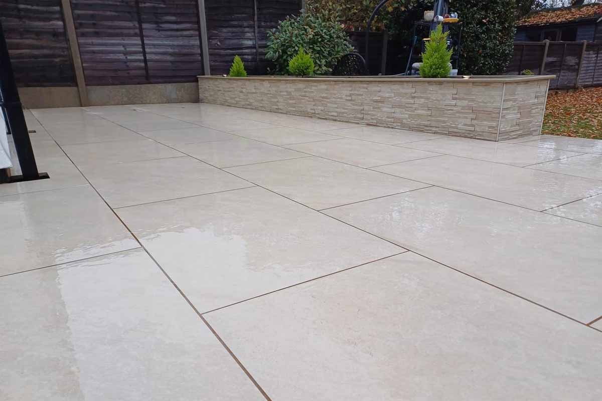 White Quartz Porcelain Paving replicates the bright, clean look of natural quartz stone, featuring a riven-effect surface for added authenticity. Its crisp white tone reflects light beautifully, making it ideal for modern outdoor spaces where you want a fresh, airy feel while still retaining the character of natural stone. Available in 600×600, 900×600 and 1200×600 slabs, the range offers layout flexibility — from small contemporary terraces to large, open garden spaces. Durable, hard-wearing and low-maintenance, White Quartz delivers long-lasting performance in all weather conditions.